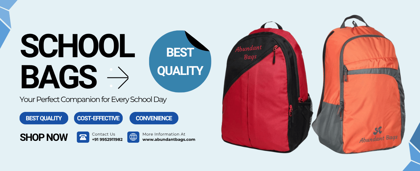 Abundant Bags is the most eminent company that is involved in the manufacturing, supplying, and wholesaling of all kinds of bags such as School bags, College bags, Office Executive bags, Travel bags, Trolley bags, Corporate Gift bags, and many more.